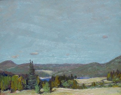 James E.H. MacDonald was born in Durham England in 1873 of Canadian parents. He took evening art classes at the Hamilton Art School as a teenager, before relocating to Toronto. In Toronto He studied at the Central Ontario School of Art. From 1894 he worked as a graphic designer at Grip Ltd. In 1903, he sailed for England and joined Carlton Studios a London graphic firm. On his return to Canada in 1907 he rejoined Grip and began to paint the landscape near Toronto. Around this time Tom Thomson joined the Grip staff. F.H. Johnston joined a short time later. These artists found they had much in common and began going on sketching trips as a group. In 1910 he exhibited for the first time at the Royal Canadian Academy. By 1912 all the original members of the Group of Seven had met and were regularly sketching together. MacDonald was devastated by the accidental drowning of Tom Thomson in 1917. He designed a brass plaque to Thomson's memory which was mounted to a cairn erected at Canoe Lake. The first official Group of Seven exhibition took place in May of 1920. MacDonald accepted a teaching position at the Ontario College of Art in 1921 and was appointed as principal in 1929. He continued to go on painting trips but his teaching responsibilities sapped his energies and he did few large canvases during this time. He died in Toronto in 1932.