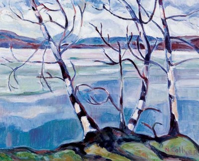 In the years that followed, Nora taught drawing at Trafalgar School and at the AAM with Sarah Robertson. She participated in the Spring Exhibitions of the AAM from 1919 to 1955. Her choice of subject matter included potraits, still life and landscapes portrayed in different seasons of the year. She also exhibited with the RCA from 1922 to 1942 and with the Canadian Group of Painters. She held solo exhibitions at the Dominion Gallery (1946) and at the Walter Klinkhoff Gallery (1964). Nora Collyer was a member of the