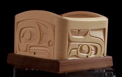 As a tribute to his skill and craftsmanship, Richard was commissioned to replicate a bentwood box from the collection of the American Museum of Natural History in New York. The original box was a favorite of the famed Haida artist Bill Reid and this new piece was created to contain his ashes in 1998.
